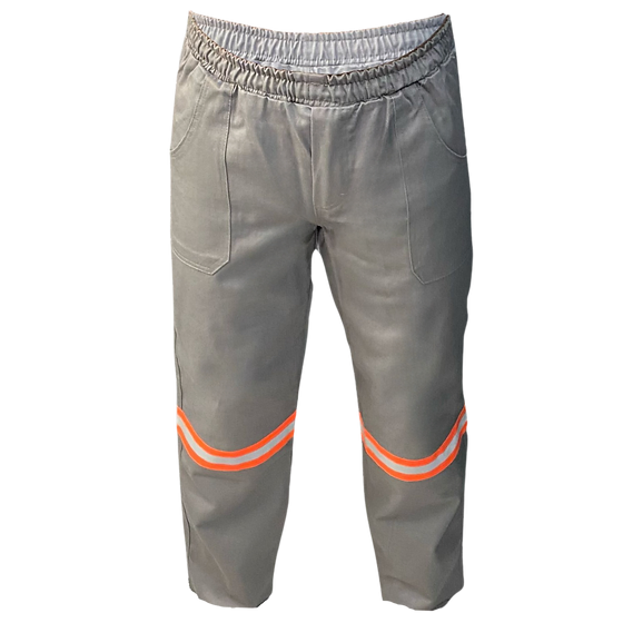 Calça de segurança confeccionada em uma camada de tecido Cedrotech FR, sarja 3×1, composto por 100% algodão; ATPV 11 cal/cm², fabricado pela empresa Cia de Fiação e Tecidos Cedro Cachoeira S/A, com gramatura nominal de 8,6 oz/yd² (290 g/m²).