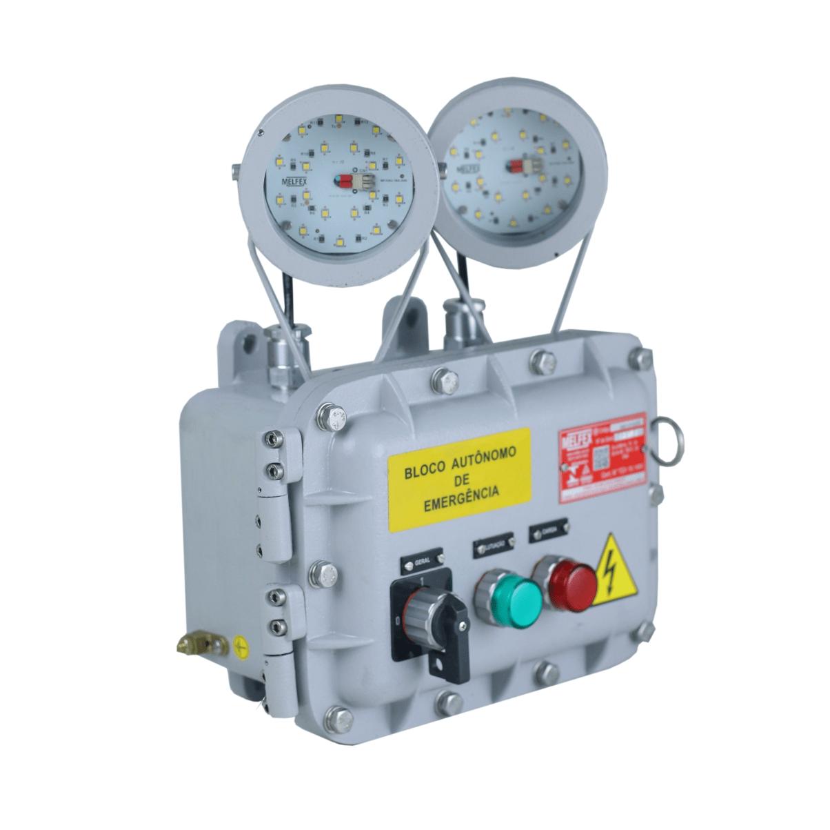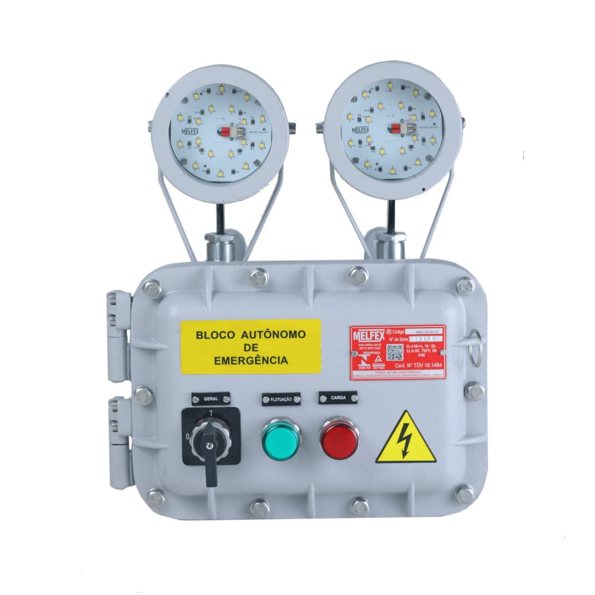 Bloco autônomo de emergência à prova de explosão e à prova de Poeiras, para uso em áreas classificadas como Zona: 1; 2; 21 ou 22, grau de proteção Ip66.