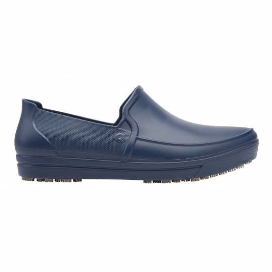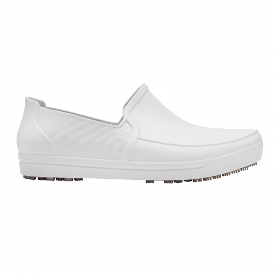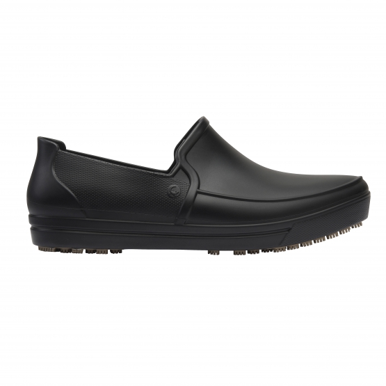 Calçado ocupacional (OB), tipo A (calçado baixo), classe II, confeccionado em material polimérico, com solado de borracha vulcanizada antiderrapante, com absorção de energia no calcanhar (E), solado resistente ao escorregamento em piso de cerâmica contaminado com detergente e piso de aço contaminado com glicerol (SRC) e calçado inteiro resistente a água (WR). Possui palmilha polimérica interna removível.
