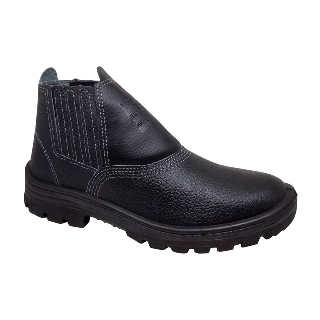 Calçado ocupacional tipo botina, modelo blatt, fechamento em elástico, confeccionado em couro curtido ao cromo, palmilha de montagem em não tecido, montada pelo sistema strobel, solado em poliuretano monodensidade.