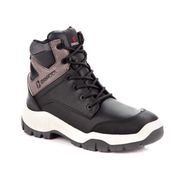 Calçado ocupacional de uso profissional, tipo botina, fechamento em cadarço, confeccionado em couro nobuck, palmilha de montagem em material sintético montada pelo sistema strobel, biqueira de conformação, solado de poliuretano bidensidade antiderrapante injetado diretamente no cabedal, sistema de absorção de energia na região do salto, resistente ao óleo combustível.