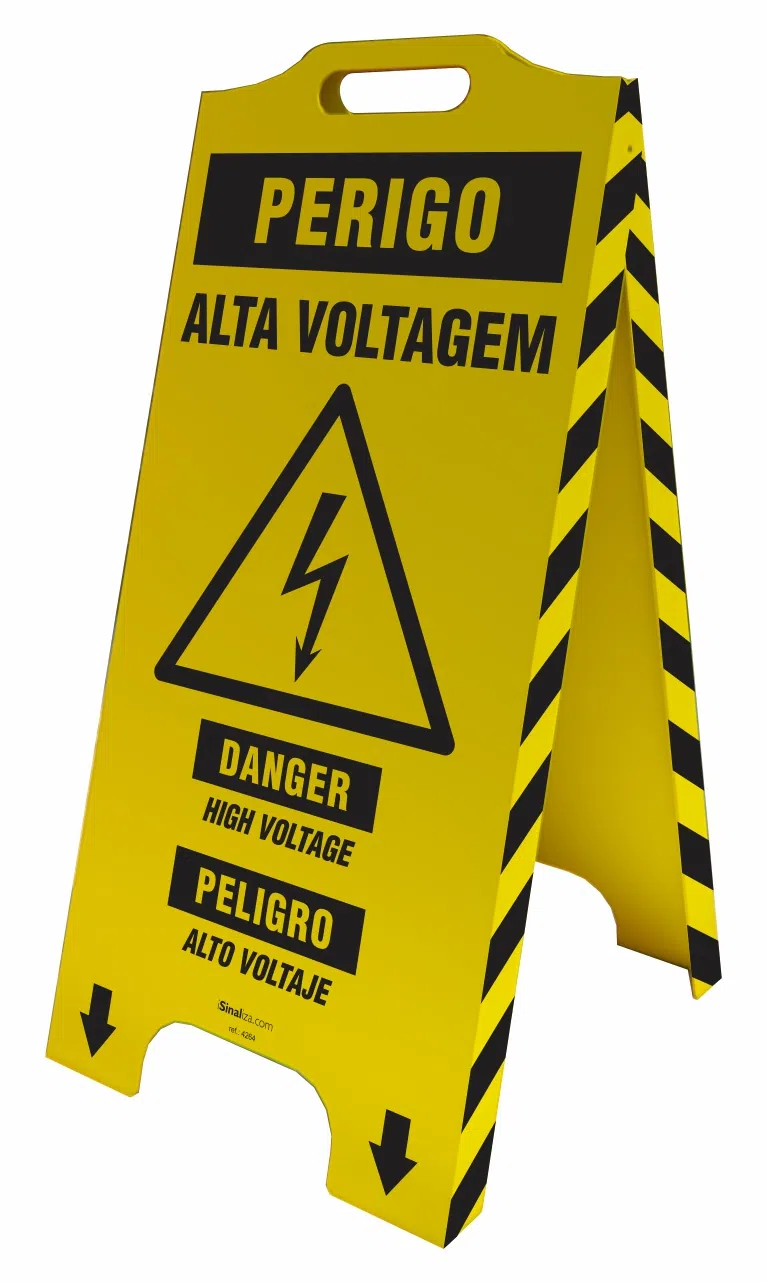 O cavalete de sinalização perigo alta voltagem (trilíngue), é utilizado para alertar de forma simples e segura sobre possíveis acidentes. As informações contidas nos cavaletes estão nos idiomas português, inglês e espanhol.