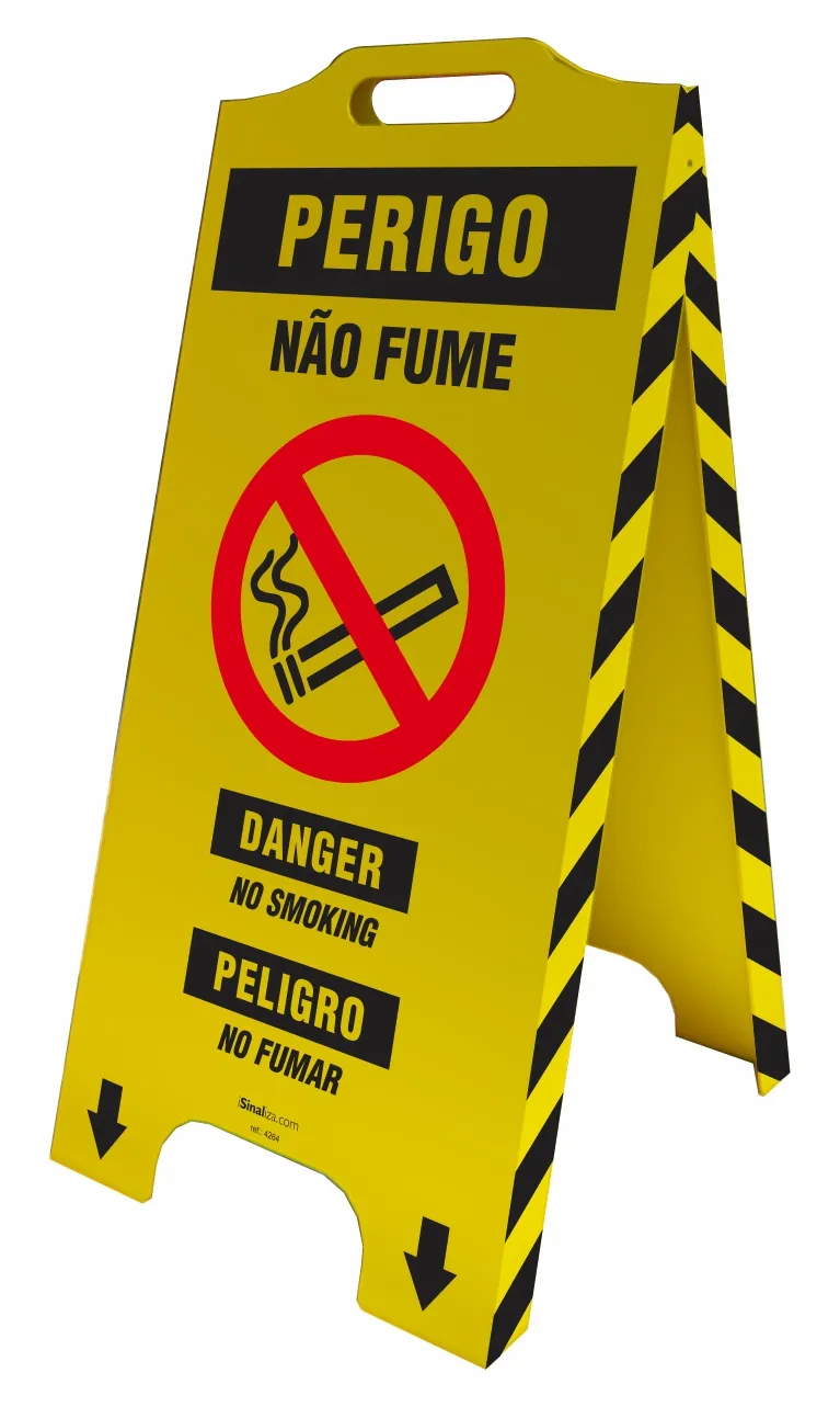 O cavalete de sinalização perigo não fume (trilíngue), é utilizado para alertar de forma simples e segura sobre possíveis acidentes. As informações contidas nos cavaletes estão nos idiomas português, inglês e espanhol.