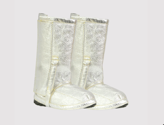 Perneira de segurança confeccionada em tecido de algodão aluminizado, costurado todo em linha de aramida, fechamento em velcro com lapela de segurança.